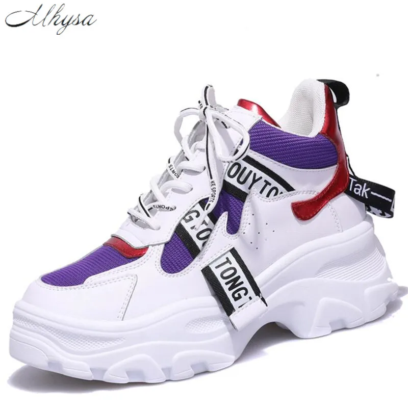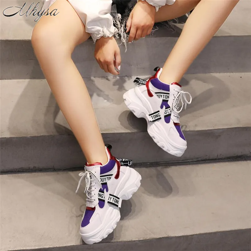 Mhysa Women's Chunky Sneakers 2019 Fashion Women Platform Shoes Lace Up Pink Vulcanize Shoes Womens Female Trainers Dad Shoes