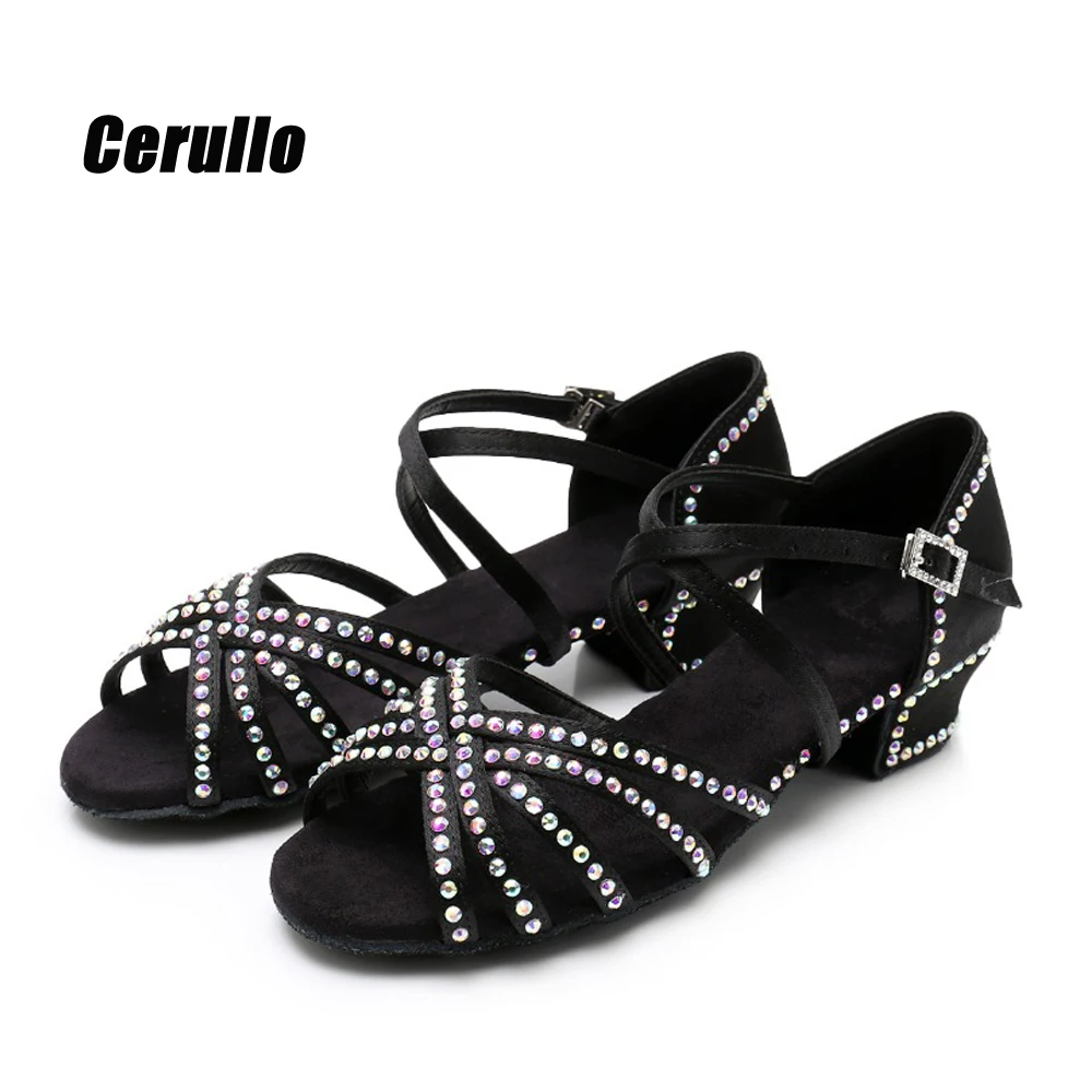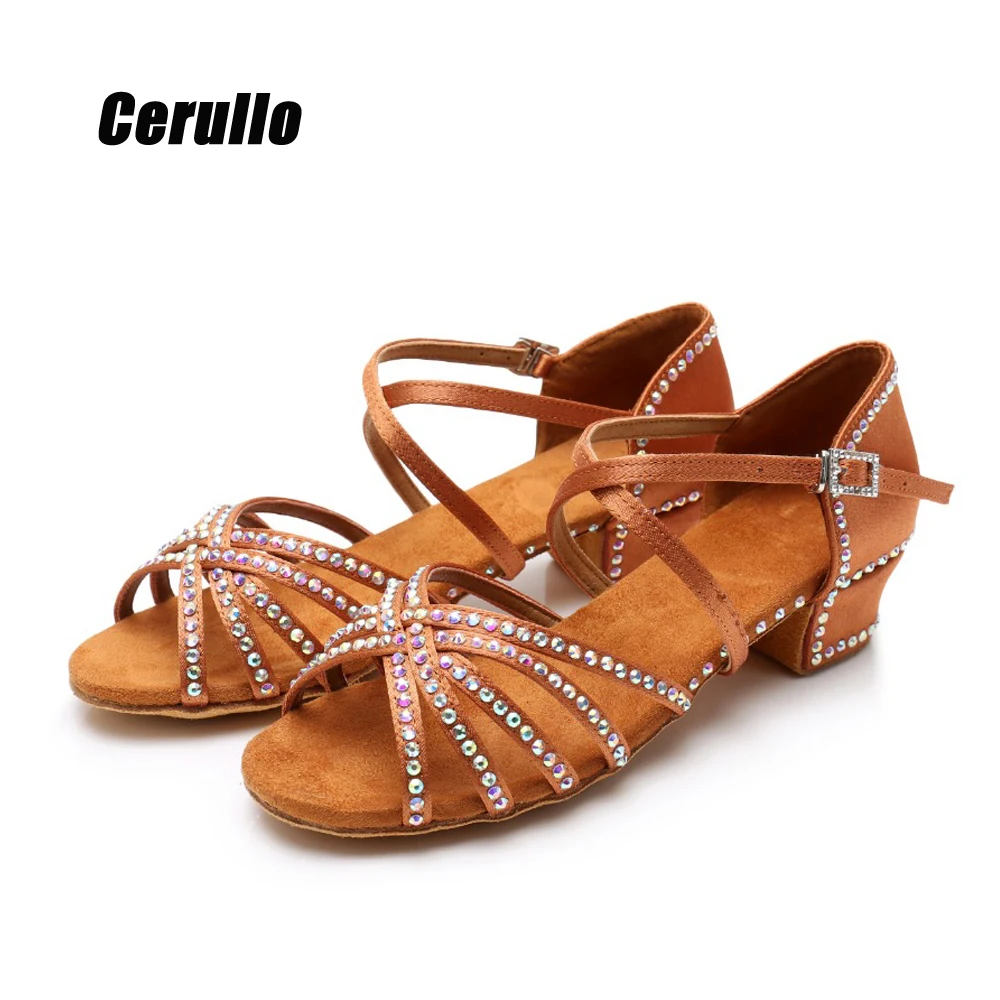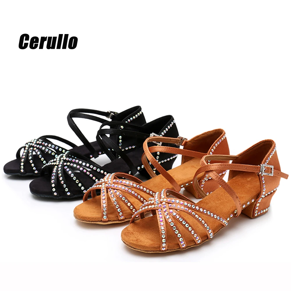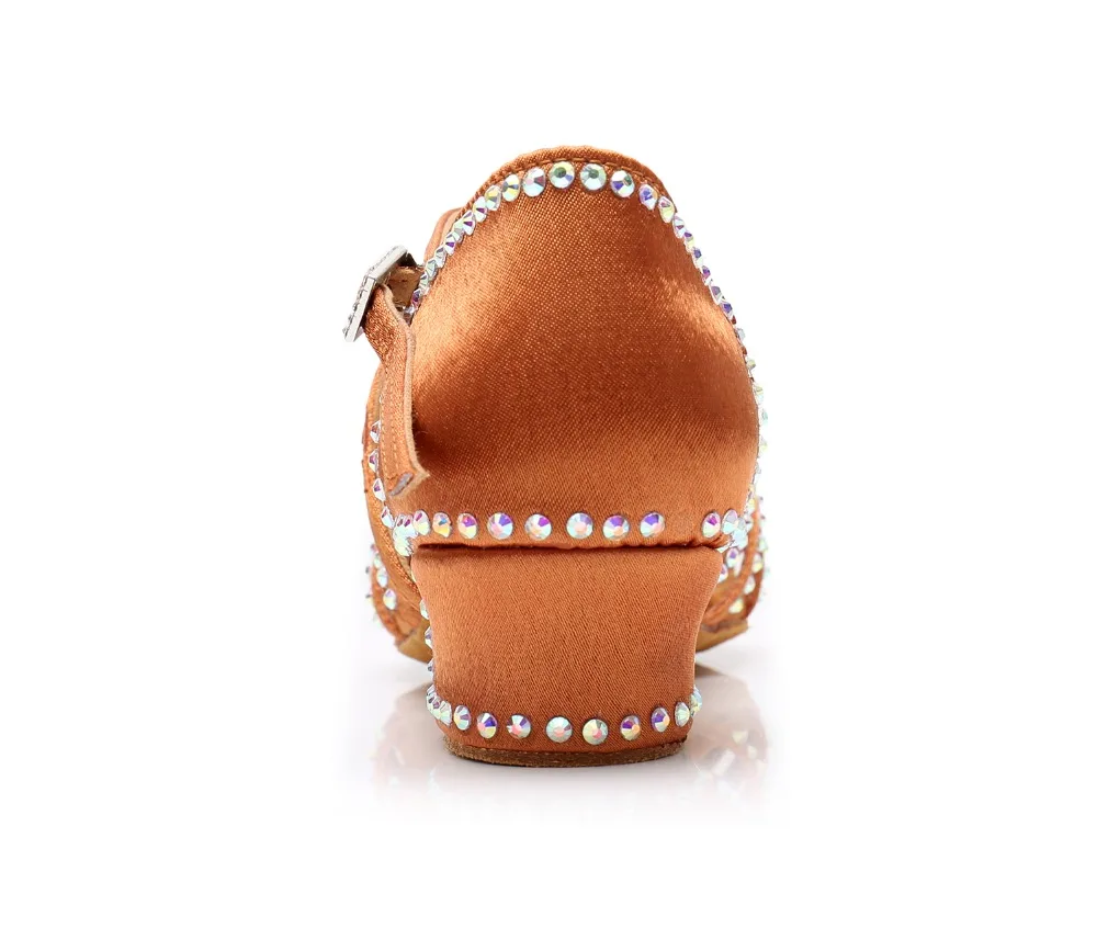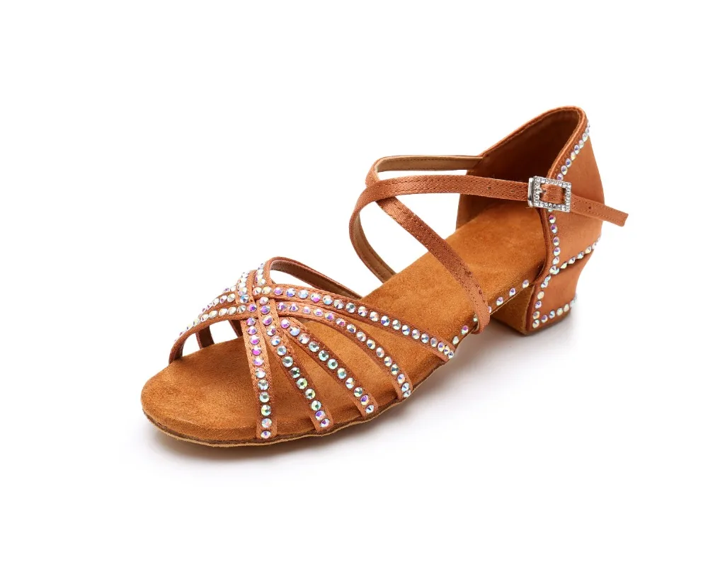 Best Price Diamond Decorated Satin Fabric Low Heel Children Teenagers Latin Dance Shoes Ballroom Tango Dancing with FREE Worldwide Shipping!