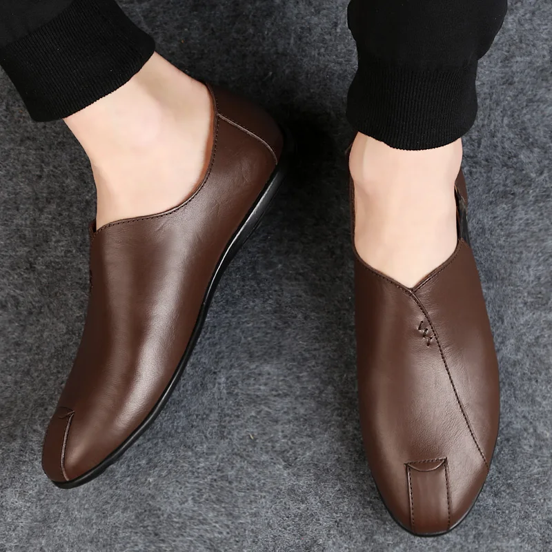 Genuine Leather Men Shoes Luxury Brand 2020 Casual Slip On Formal Loafers Men Moccasins Italian Black Male Driving Shoes Jkpudun