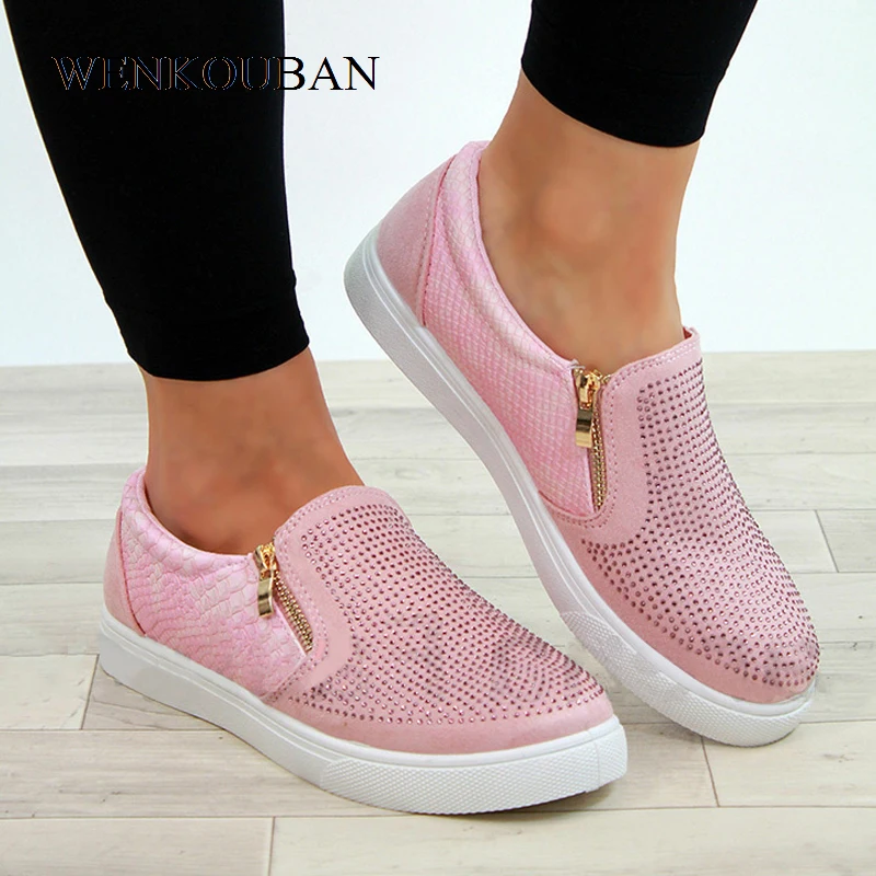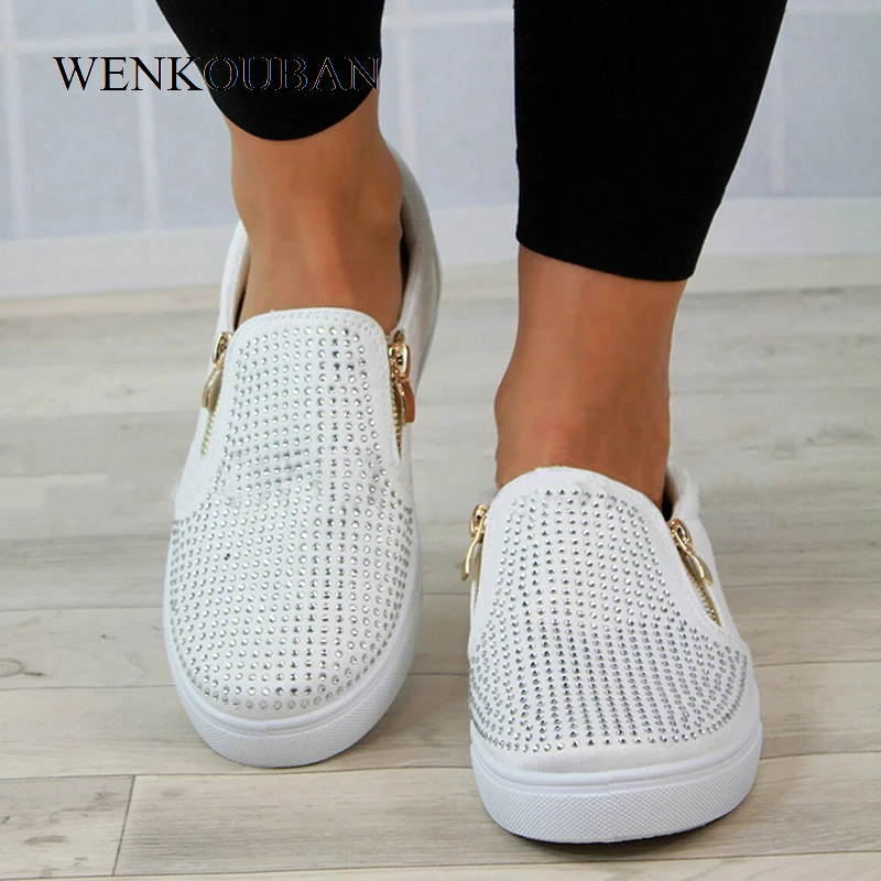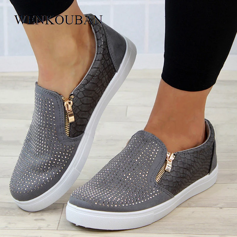 Limited Offer Platform Shoes Women Crystal Slip On Flat Loafers Female Wedge Shoes For Women Mocassin Zipper Glit with FREE Worldwide Shipping!