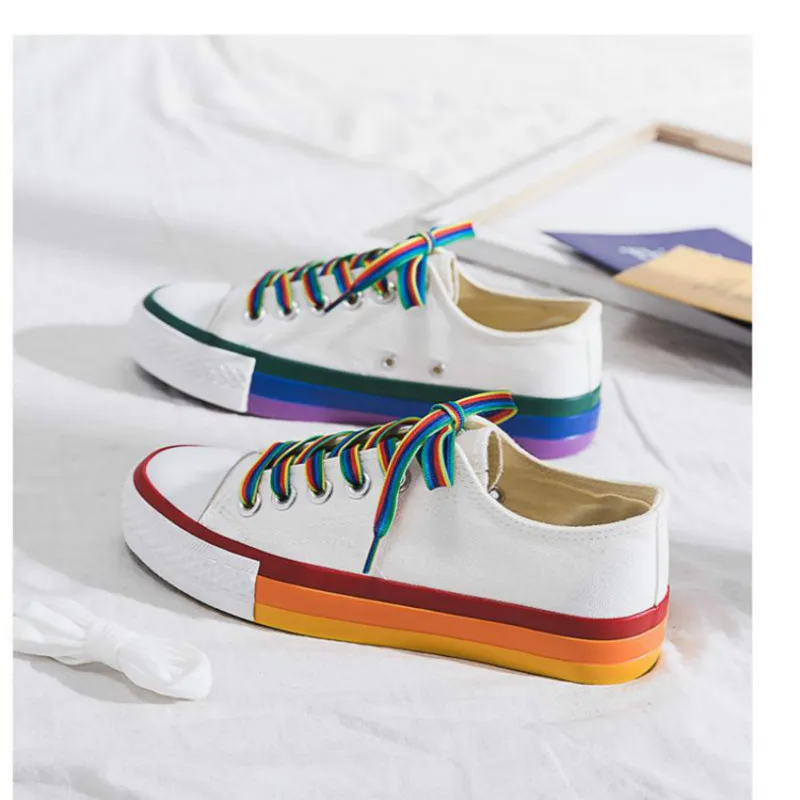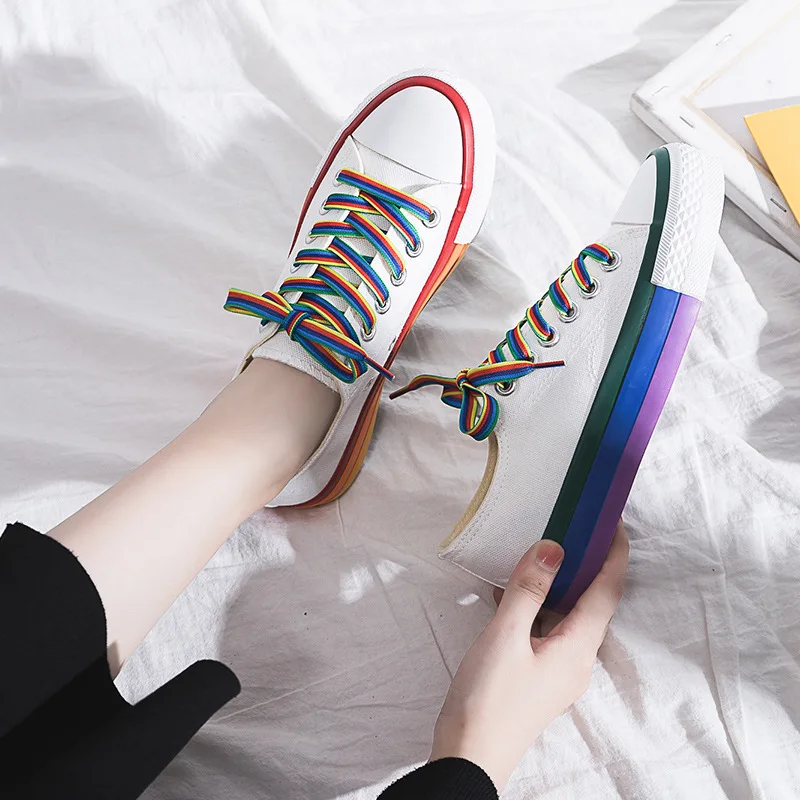 Best Price Swyivy Rainbow White Shoes Woman Canvas Sneakers With Color Lace Spring Female Casual Snea with FREE Worldwide Shipping!