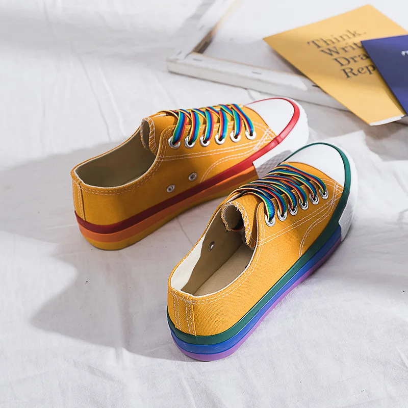 Swyivy White Shoes Lady Canvas Vulcanize Woman 2020 Rainbow Jelly Bottom Sneakers Female Casual Shoes Canvas Sneakers For Woman