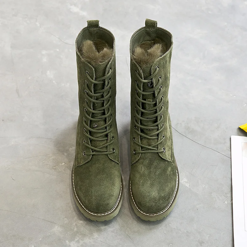 Swyivy Genuine Leather Boots Women Winter Shoes Fashion 2019 Mid Calf Platform Women Boots Warm Solid Short Plush Shoes Woman 41