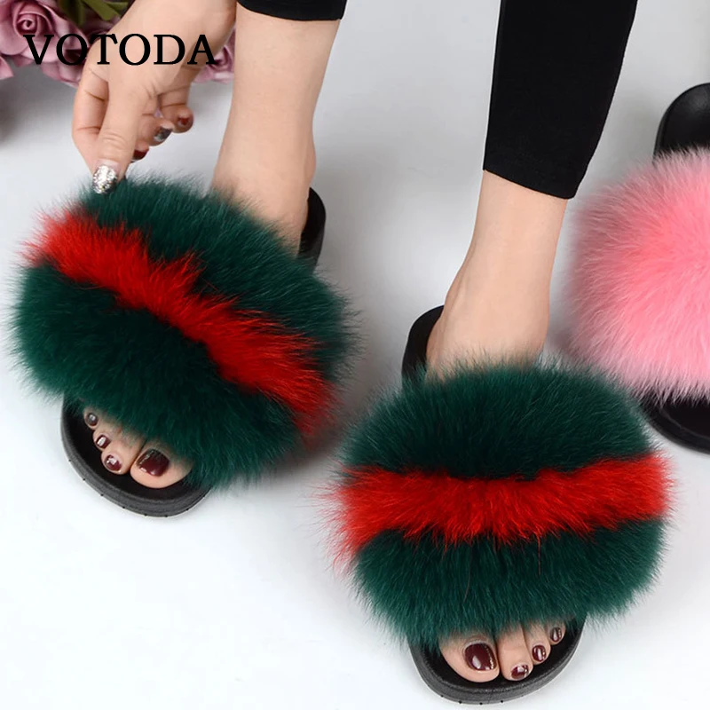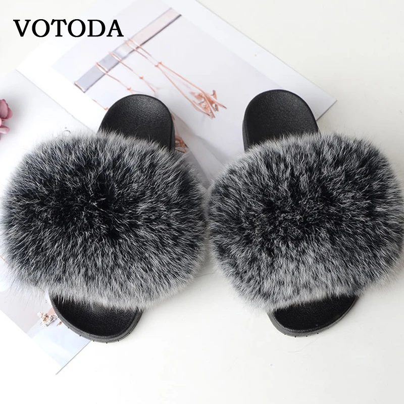 Best Offer Women Fur Slippers Real Fox Fur Slides Fluffy Furry Fur Sandals Woman Home Slippers Ladies with Free Shipping Worldwide!
