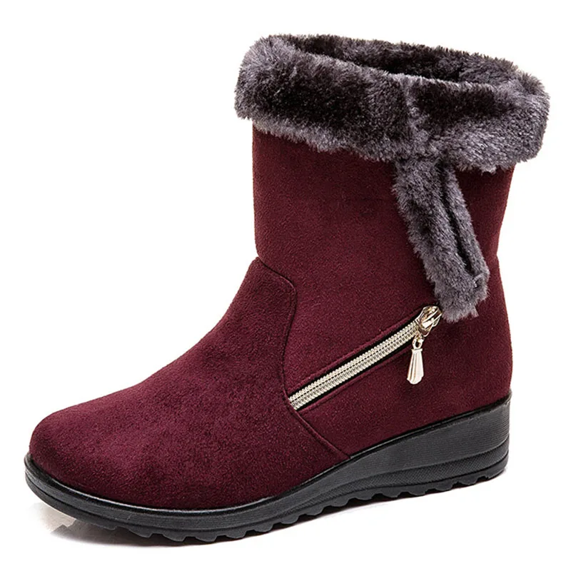 Women Boots Winter Plush Inside Snow Boots Suede Low Heels Ankle Boots For Female Winter Shoes