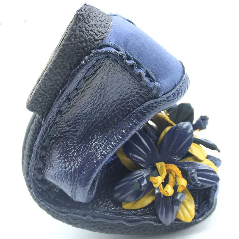 Xiuteng New National Wind Flowers Handmade Genuine Leather Shoes Women Retro Soft Bottom Flat Shoes Summer Canvas Ballet Flats