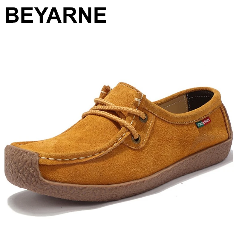 Best Price Beyarne Women Genuine Leather Flat Shoes Lace Up Sneakers Autumn Oxford Shoes Female Loafers with Free Shipping Worldwide!