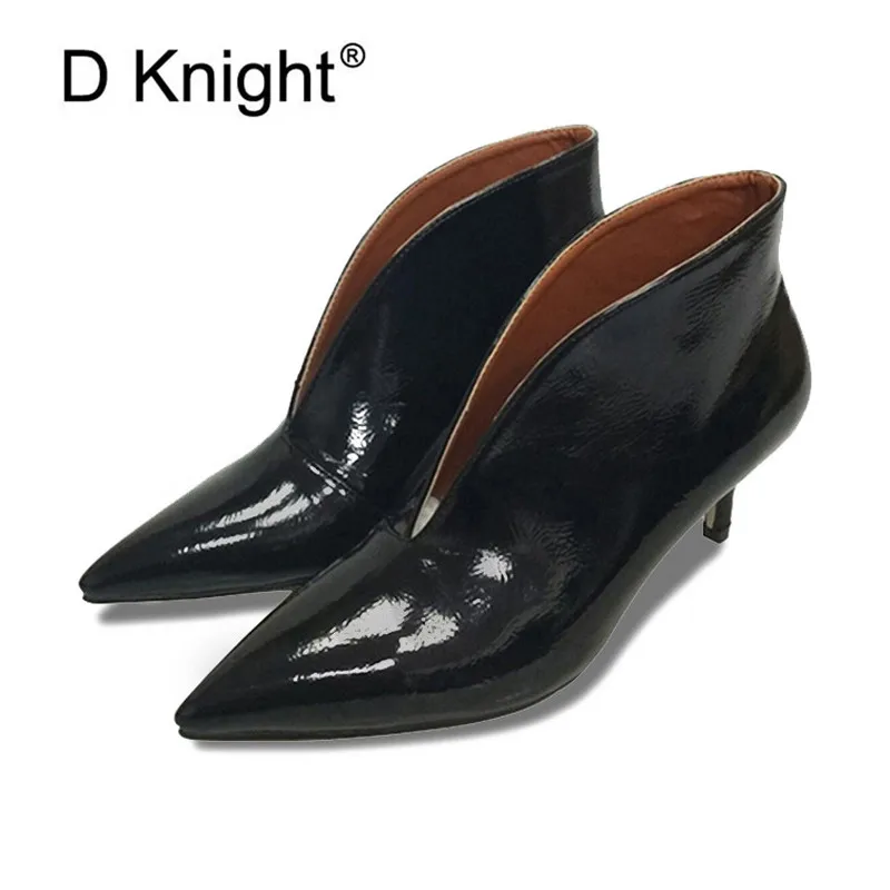 2020 New Arrival Fashion Shoes Women Boots Snake Patent Leather Ankle Boots Pointed Toe Thin High Heels Boots Sexy V-Mouth Shoes