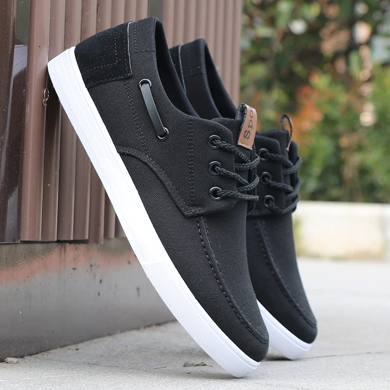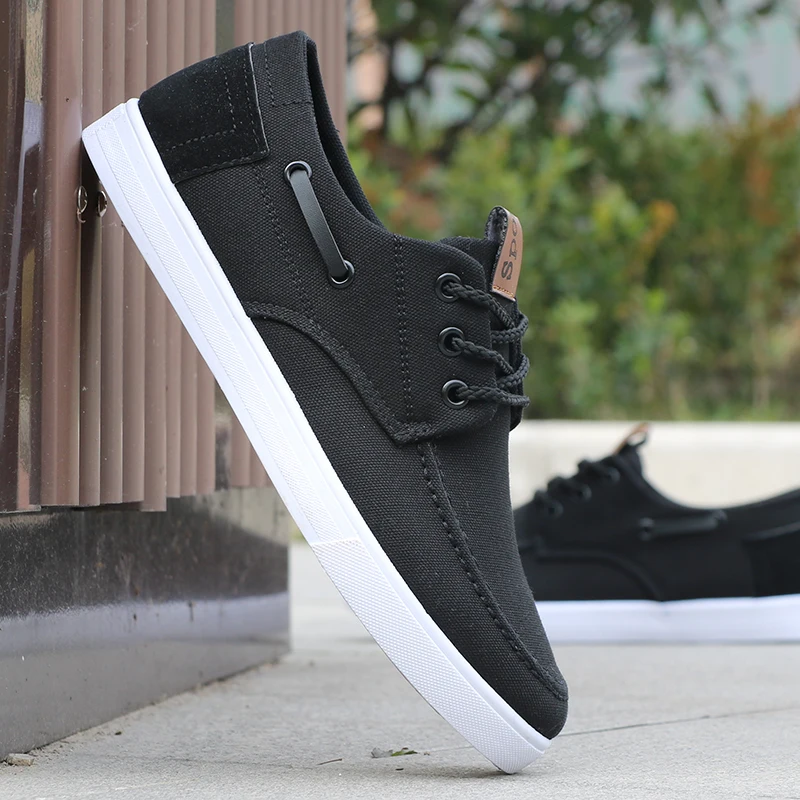 Black White Solid Men Casual Shoes Simple Canvas Mens Loafers 2019 High Quality Anti-Slip Comfortable Vulcanized Shoes Man Flats